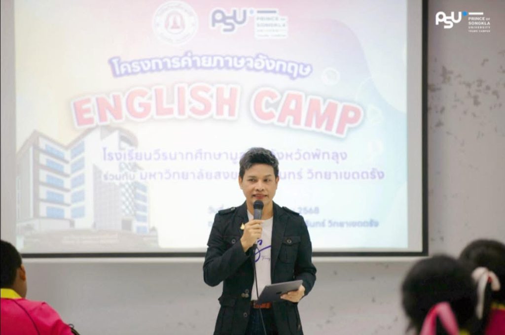 หลักสูตรภาษาอังกฤษธุรกิจ คณะพาณิชยศาสตร์และการจัดการ มหาวิทยาลัยสงขลานครินทร์ วิทยาเขตตรัง จัดโครงการ “English Camp 2025” ระหว่างวันที่ 10–11 พฤศจิกายน 2568 เพื่อพัฒนาทักษะการใช้ภาษาอังกฤษของนักเรียนระดับมัธยมศึกษาโรงเรียนวีรนาทศึกษามูลนิธิ จังหวัดพัทลุง ผ่านกิจกรรมเรียนรู้เชิงปฏิบัติจริงและกิจกรรมสร้างสรรค์ที่เน้นการสื่อสารอย่างมั่นใจ ถูกต้อง และเป็นธรรมชาติ